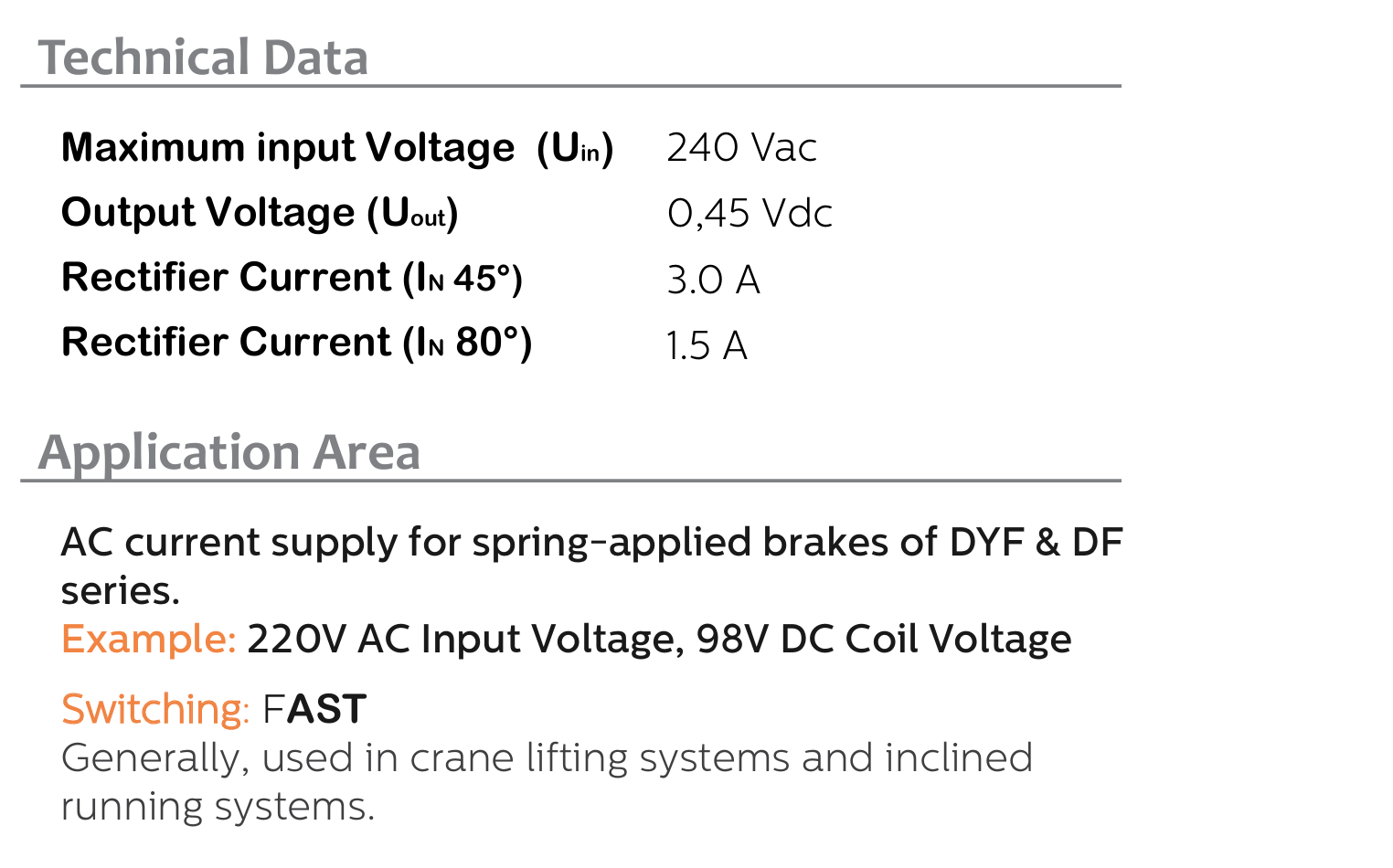 AC current supply for spring-applied brakes of DYF & DF series.