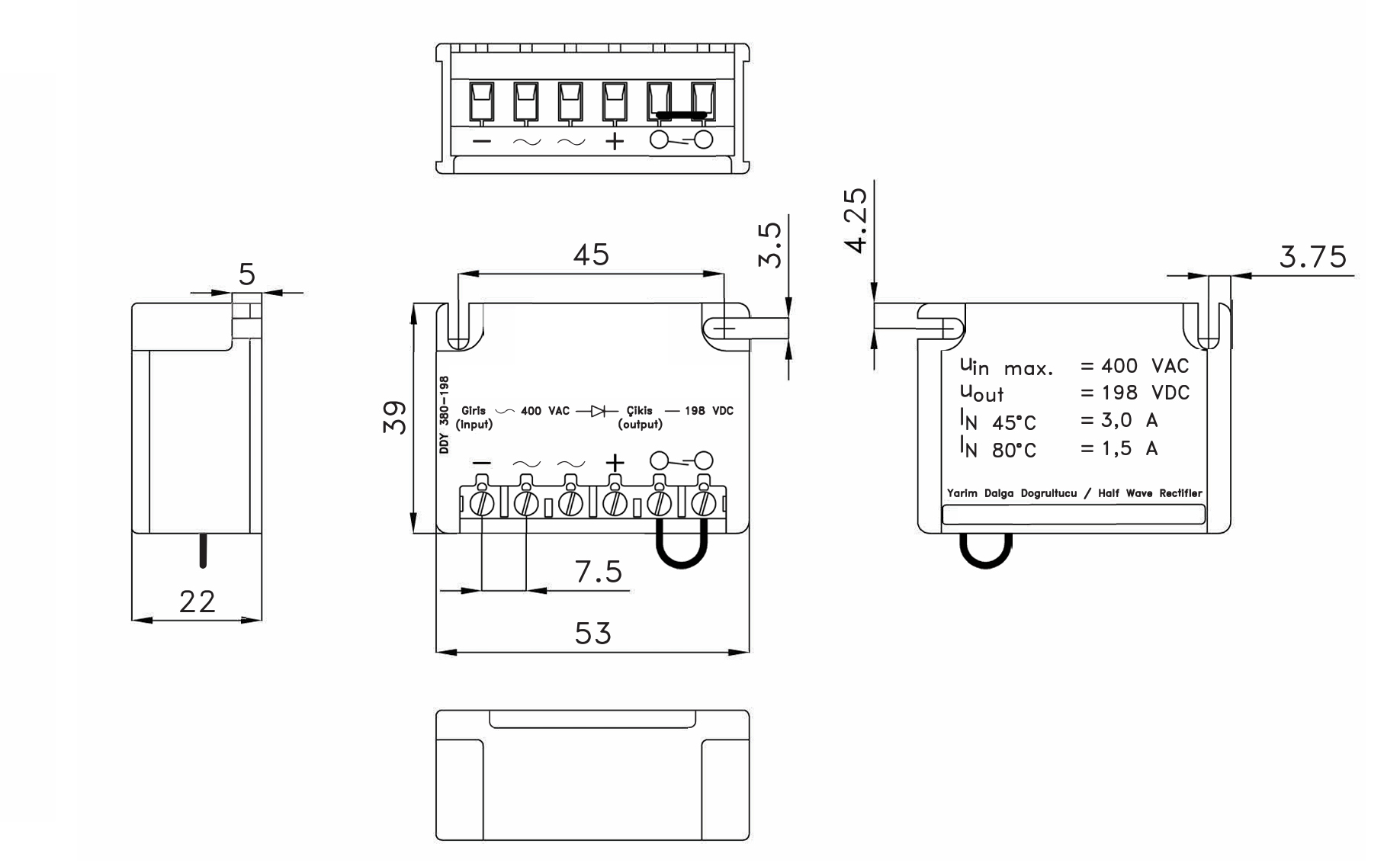 MAYR 1/025.000.6,Bruckengleichrichter,1/024.000.6 Einweggleichrichter,45E2520-E1V,Half wave rectifier,