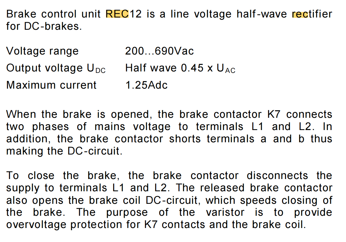 konecranes SWF Brake rectifier REC12-690+DC 60010145 Half-wave rectifier AC200-690V