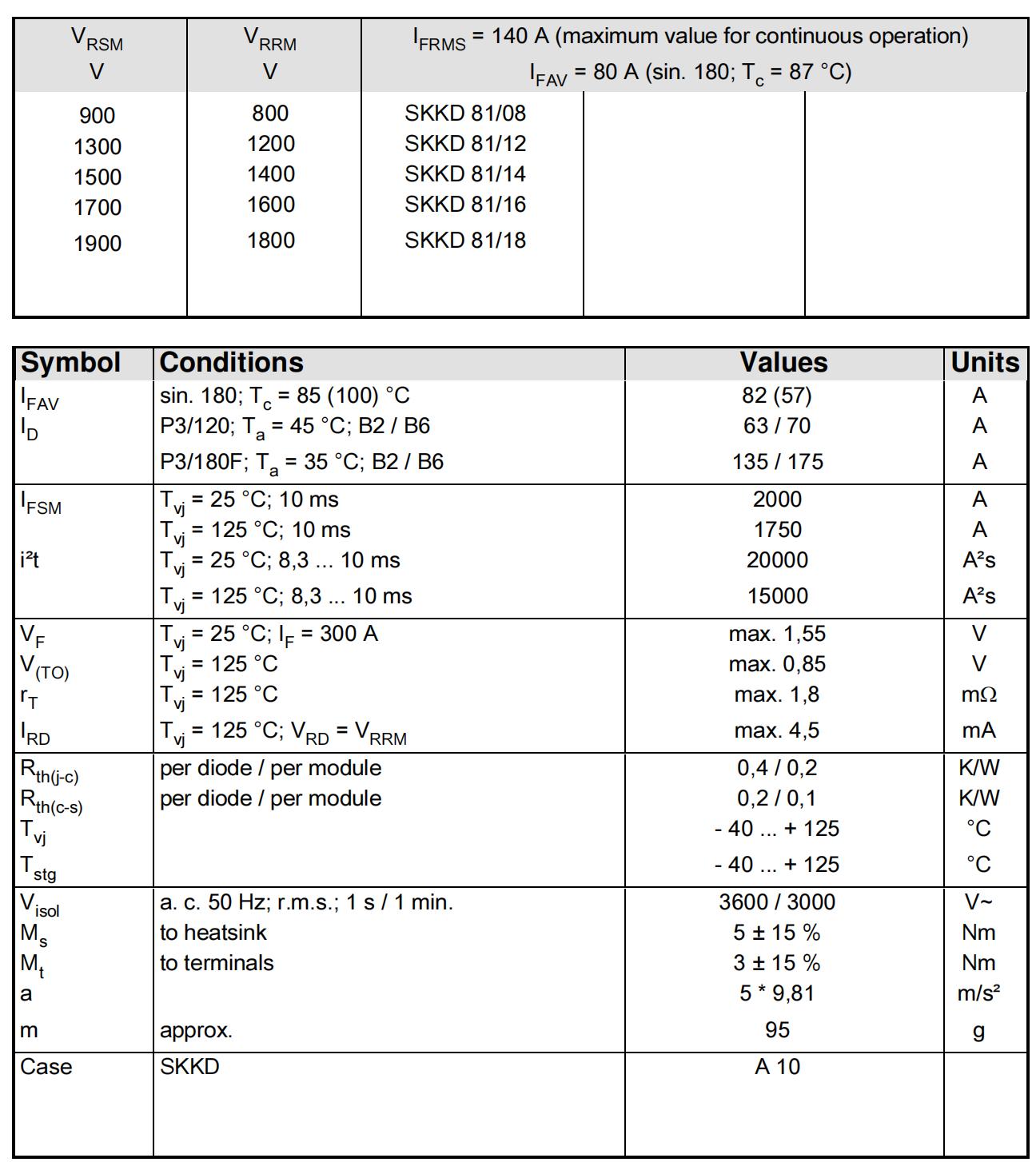Diode Modules SKKD 81/08,SKKD 81/12,SKKD 81/14,SKKD 81/16,SKKD 81/18